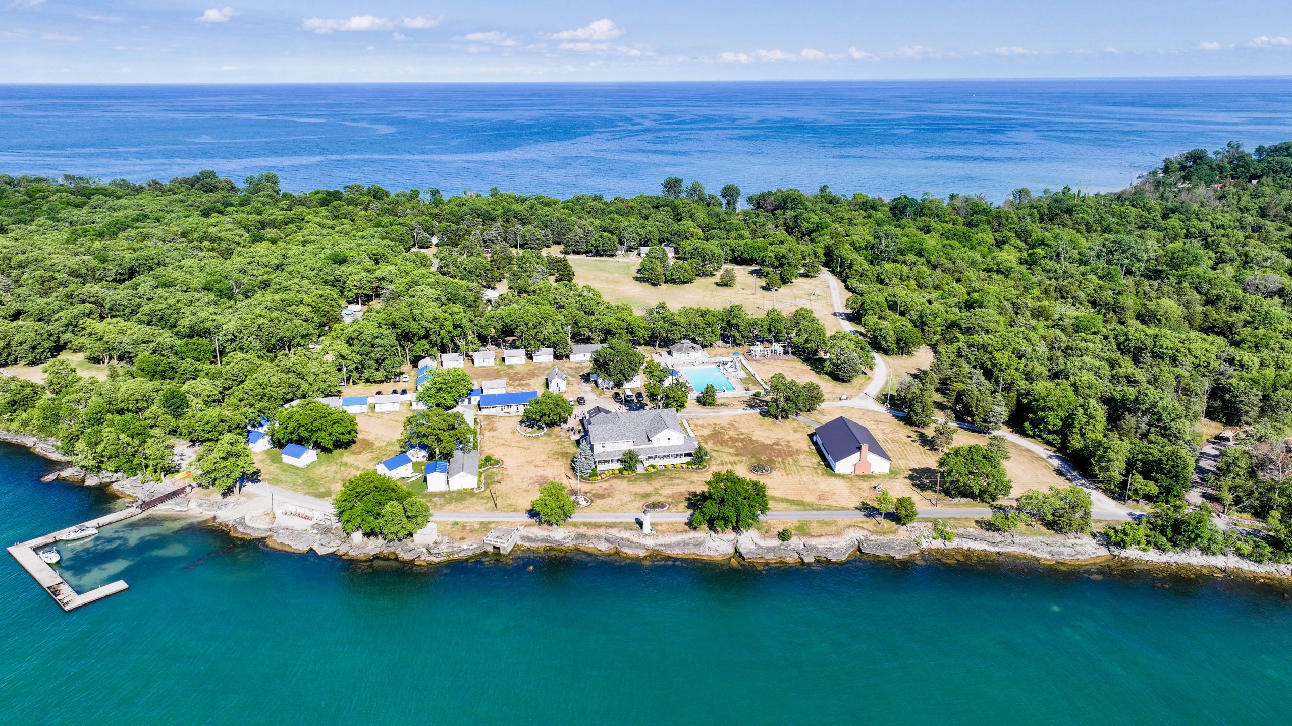 In 1952, the camp was purchased by the Ohio Regular Baptist Home and Camp, Inc., which made several improvements. The Findley Memorial Chapel was built in 1959, a swimming pool was added in 1968, a miniature lighthouse went up in 1971, and by 1975, the camp had 11 cabins for girls and 9 for boys. Through a generous donation from the Morse family, the camp expanded its property to reach the eastern shore of Long Point. Since 1998, three quad cabins with restrooms, carpet, and air conditioning have been added. The Johnson Recreation Center, which includes activities like carpetball, ping-pong, and air hockey, was also built, along with an art studio. In 2001, the “Pophouse,” an octagonal building offering treats to campers, was erected. The camp’s waterfront facilities expanded in 2002 with Rogers Landing, a 200-foot pier for speedboats and water activities.
